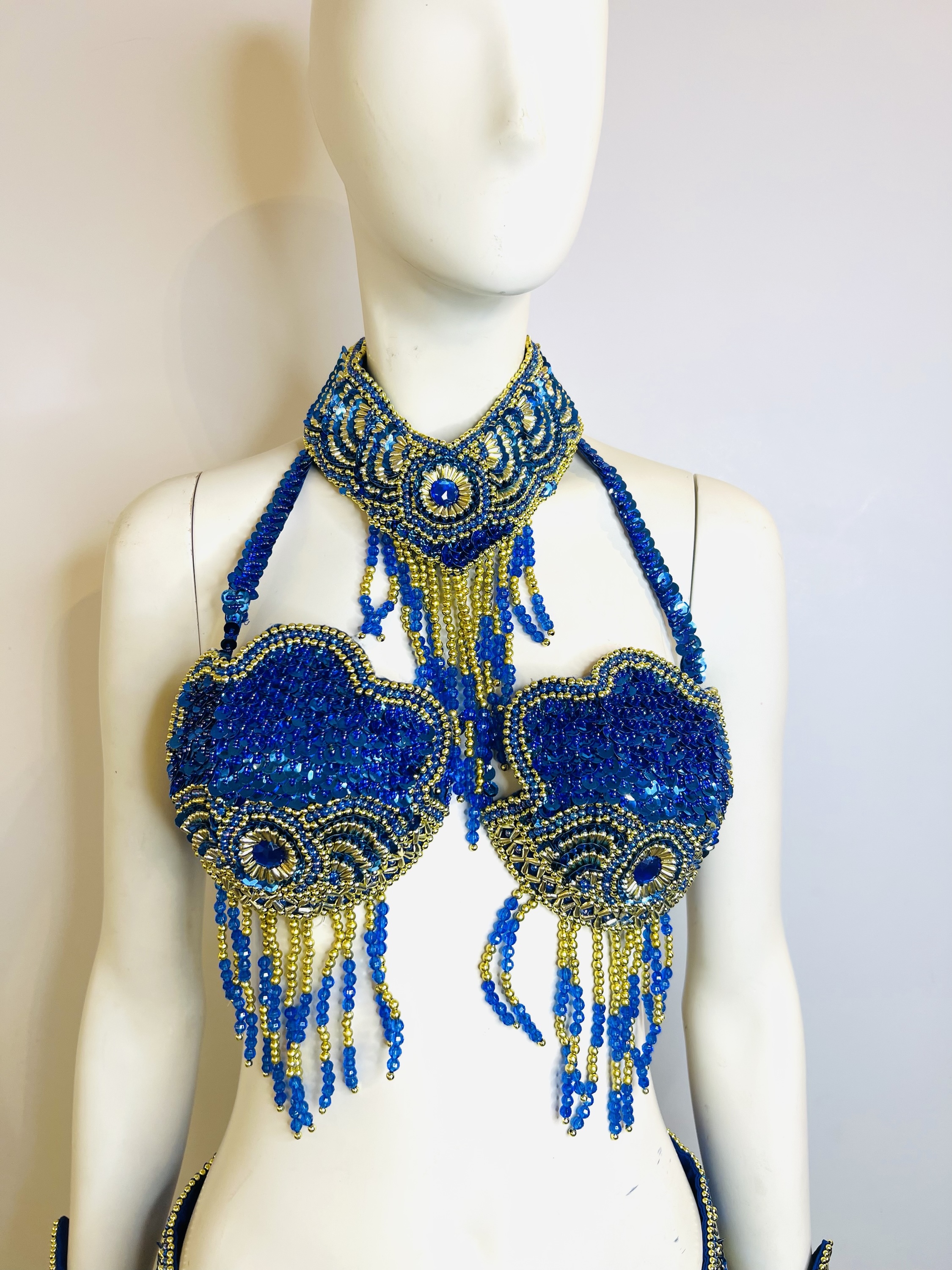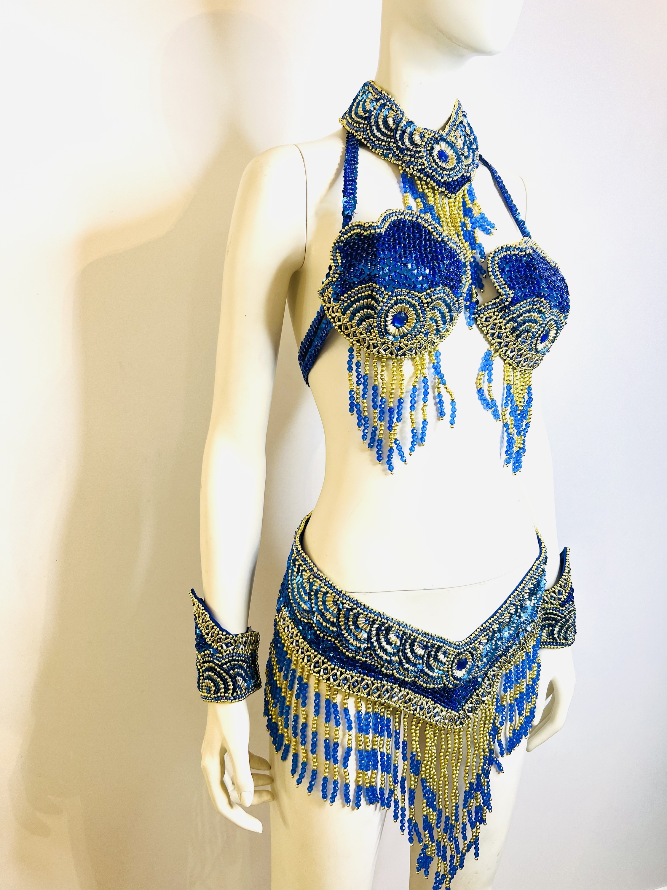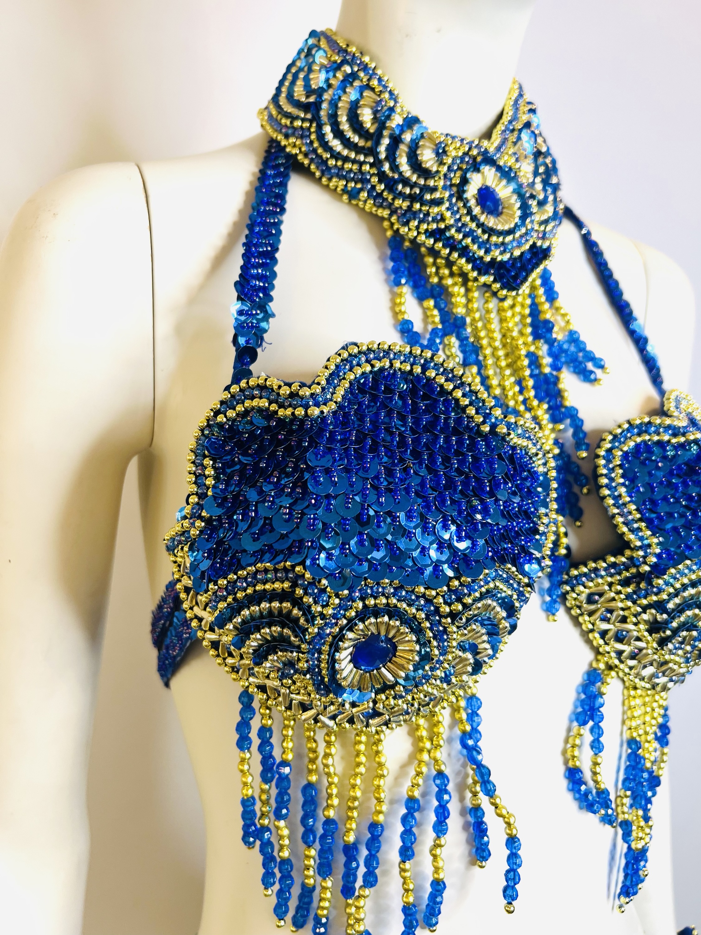 Laissez-vous emporter par le tourbillon scintillant du carnaval avec notre Bikini de samba en sequins et strass. Cet ensemble divinement confectionné à la main de taille M inclut un soutien-gorge somptueusement orné, une ceinture audacieusement séduisante, un collier resplendissant, des bracelets étincelants et des chevilles radieuses. Chaque pièce raconte une histoire unique de lumière et de joie, telle une danse virevoltante sous les étoiles tropicales.
