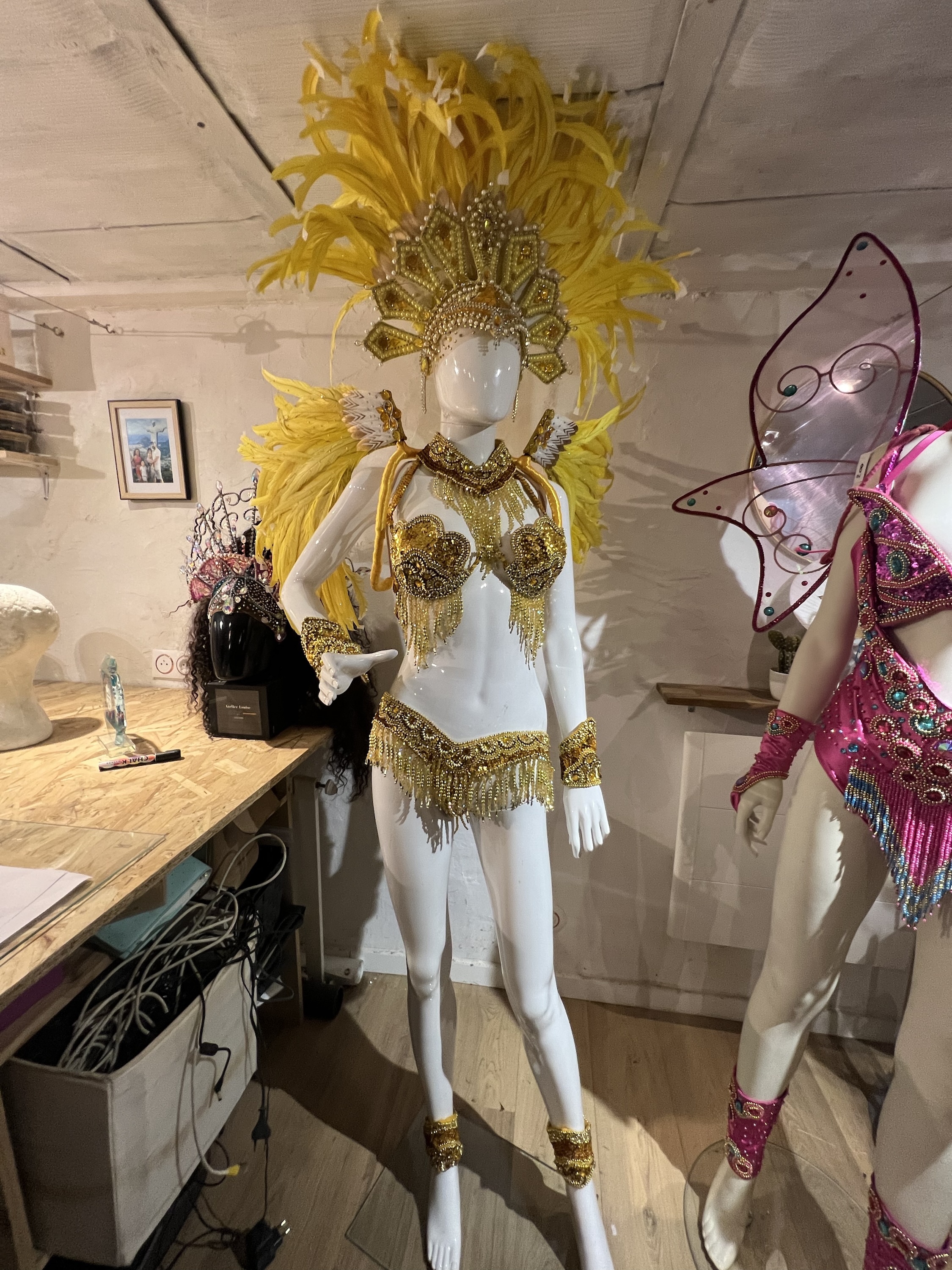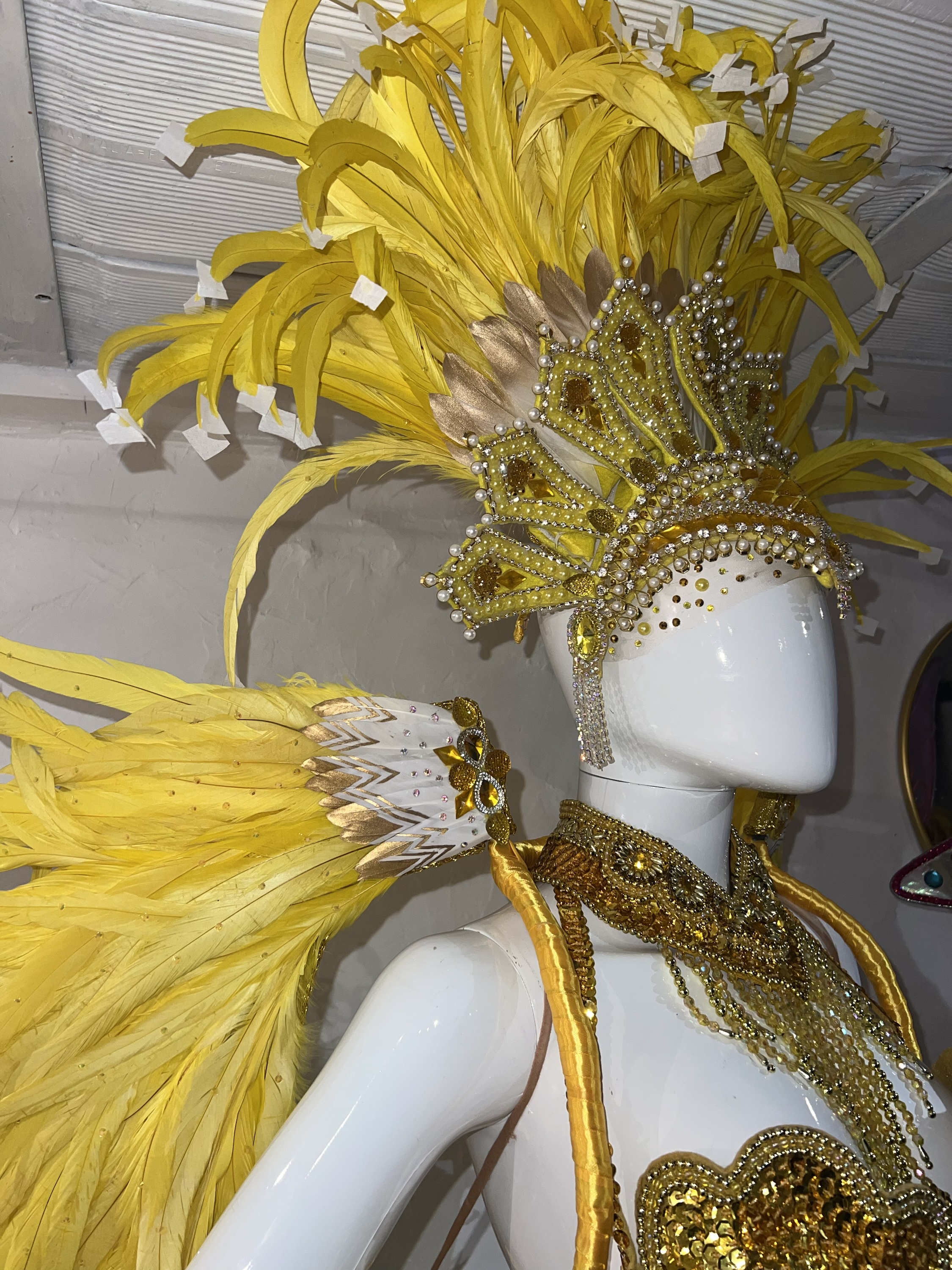 Entrez dans le monde enchanteur de la samba avec ce costume unique. Chaque pièce est minutieusement décorée de sequins et de strass, reflétant la lumière de manière ensorcelante. Les plumes détachables ajoutent une touche d’élégance, vous offrant la liberté de bouger avec grâce et légèreté. Ce costume, empreint de l’esprit du carnaval, est fait pour briller sous les projecteurs.
